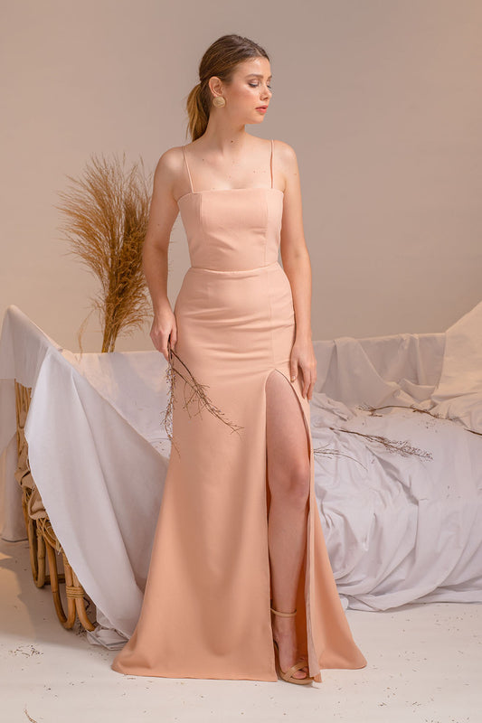 FABIANA Strappy Straight Cut Neckline Maxi Dress with High Slit (Blush Pink Crepe)Regular price ₱4,290.00Regular priceUnit price / per-