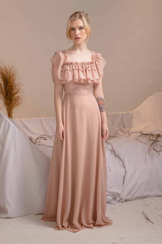 MAGDALENA Two Way Off Shoulder Chiffon Maxi Dress with Layered Ruffle Detail (Old Rose Chiffon)Regular price ₱4,590.00Regular priceUnit price / per-