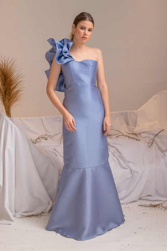 I DO BY ZOO SALAMANCA GOWN Sweetheart Cut Gown with Oversize Ruffle on Shoulder (Serenity Blue Gazar)Regular price ₱8,500.00Regular priceUnit price / per-