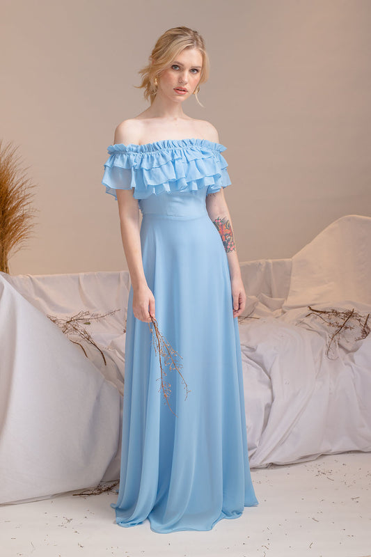MAGDALENA Two Way Off Shoulder Chiffon Maxi Dress with Layered Ruffle Detail (Sky Blue Chiffon)Regular price ₱4,590.00Regular priceUnit price / per-