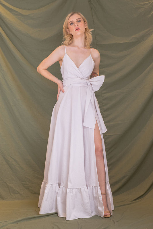 CANCUN Deep V Maxi Dress with Removable Waist Tie and High Slit (White Linen)Regular price ₱4,990.00Regular priceUnit price / per-