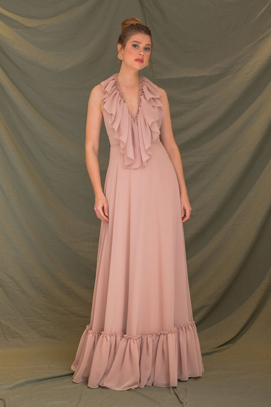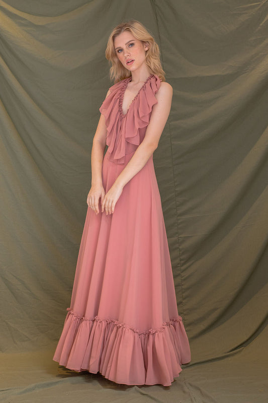SARITA Deep V Halter Chiffon Maxi Dress with Ruffles (Old Rose Chiffon)Regular price ₱5,150.00Regular priceUnit price / per-