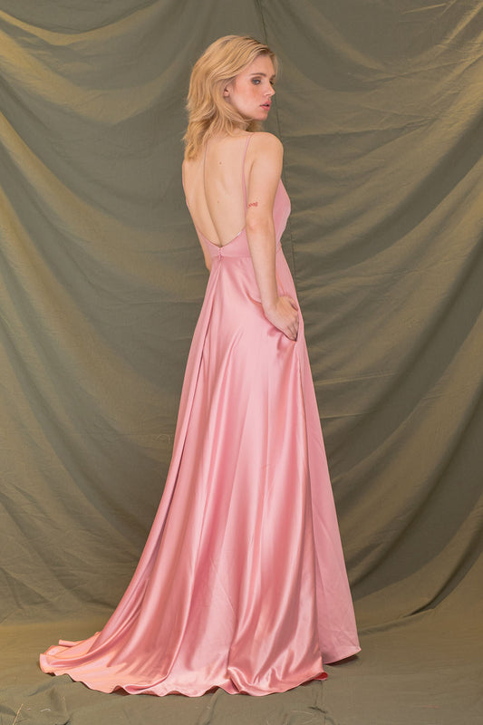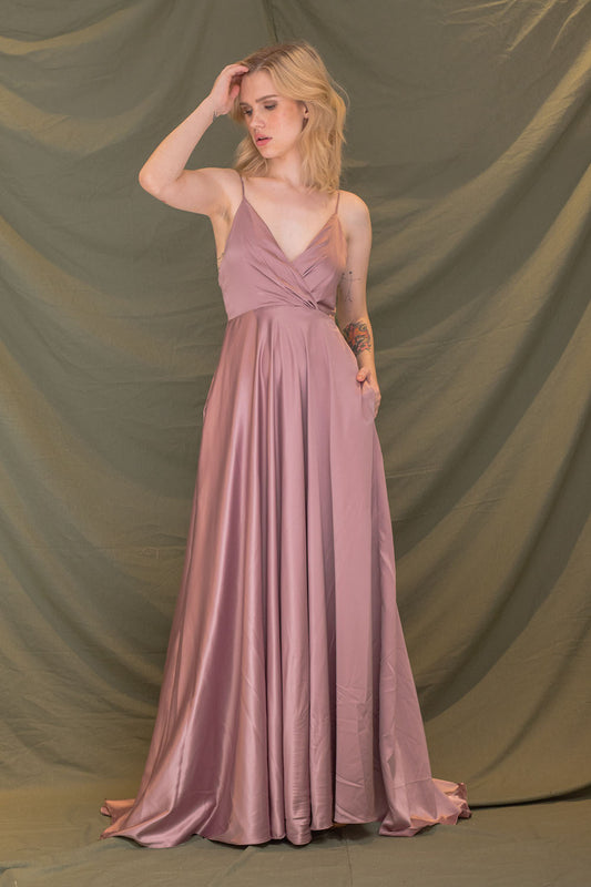 JACINTA Deep V Maxi Dress with Mini Trail and Pockets (Rose Pink Silk)Regular price ₱4,999.00Regular priceUnit price / per-