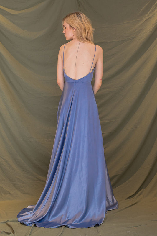 JACINTA Deep V Maxi Dress with Mini Trail and Pockets (Serenity Blue Silk)Regular price ₱4,999.00Regular priceUnit price / per-