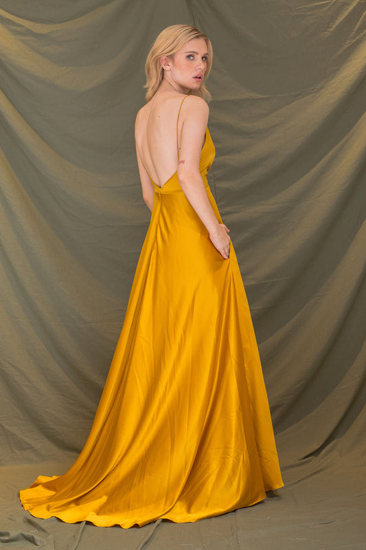 JACINTA Deep V Maxi Dress with Mini Trail and Pockets (Yellow Silk)Regular price ₱4,999.00Regular priceUnit price / per-