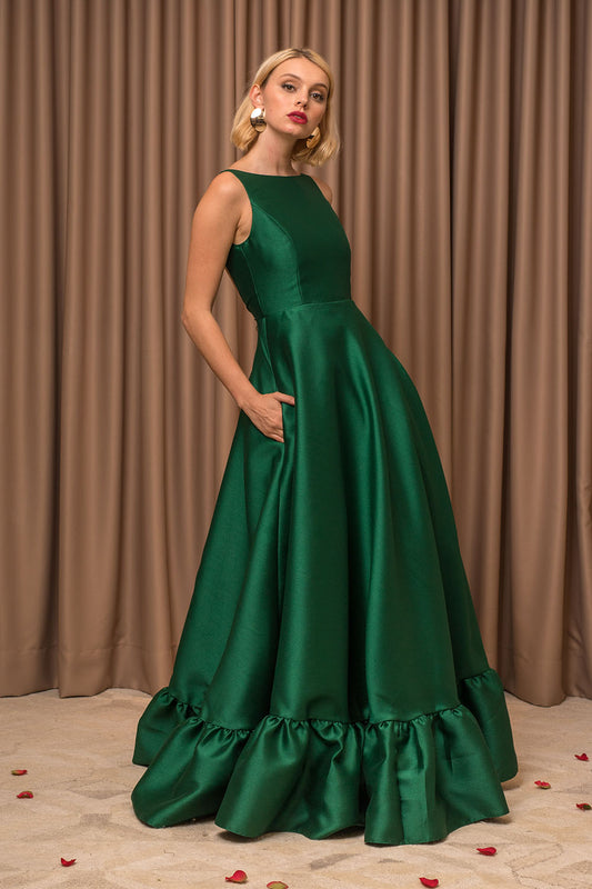 I DO BY ZOO CARMEN Deep U-Back Gown with Ruffled Skirt & Pockets (Emerald Green Gazaar)Regular price ₱8,500.00Regular priceUnit price / per-