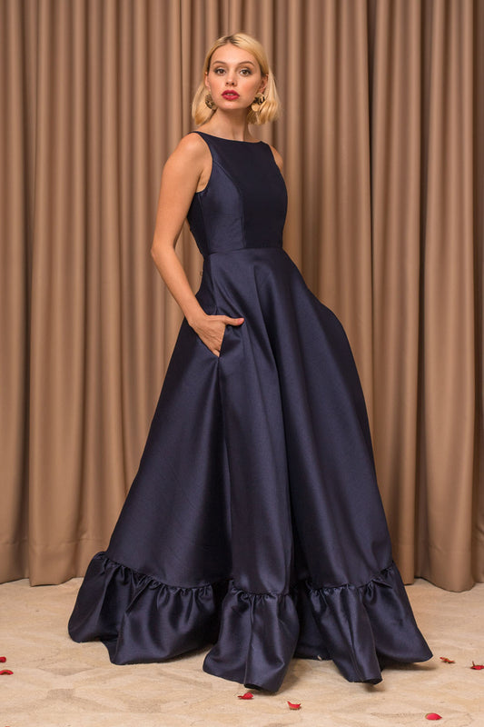 I DO BY ZOO CARMEN Deep U-Back Gown with Ruffled Skirt & Pockets (Midnight Blue Gazaar)Regular price ₱8,500.00Regular priceUnit price / per-