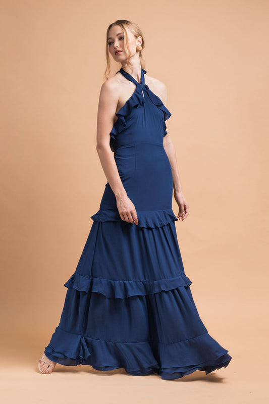 HERMOSA Chiffon Maxi with Layered Ruffles and Tie Back (Midnight Blue Chiffon)Regular price ₱6,990.00Regular priceUnit price / per-