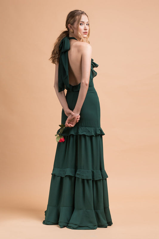 HERMOSA Chiffon Maxi with Layered Ruffles and Tie Back (Emerald Green Chiffon)Regular price ₱6,990.00Regular priceUnit price / per-