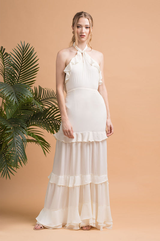 HERMOSA Chiffon Maxi with Layered Ruffles and Tie Back (White Chiffon)Regular price ₱6,990.00Regular priceUnit price / per-