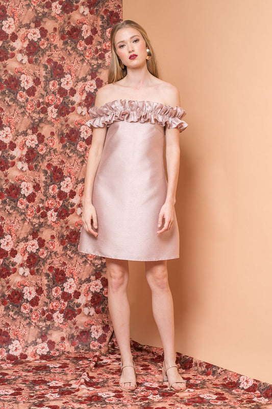 ROSA Gazaar Mini Dress with Overized Off Shoulder Ruffles (Blush Gazaar)Regular price ₱4,299.00Regular priceUnit price / per-