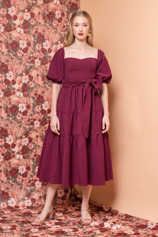 MARQUITA Puff Sleeve Midi Dress with Detachable Tie (Plum Linen)Regular price ₱3,999.00Regular priceUnit price / per-