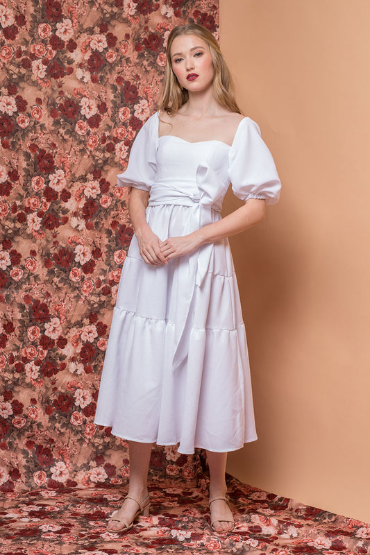 MARQUITA Puff Sleeve Midi Dress with Detachable Tie (White Linen)Regular price ₱3,999.00Regular priceUnit price / per-