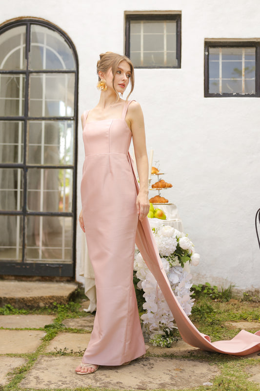 GABRIELA Strappy Straight Cut Gown with Detachable Bow Trail (Blush Gazaar)