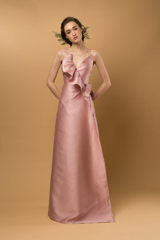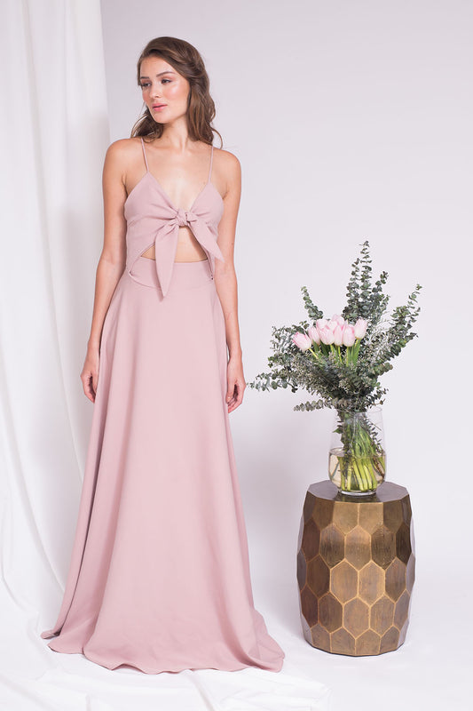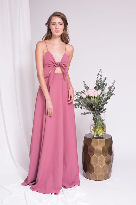 SICILY Bow Front Maxi Dress (Old Rose Crepe)