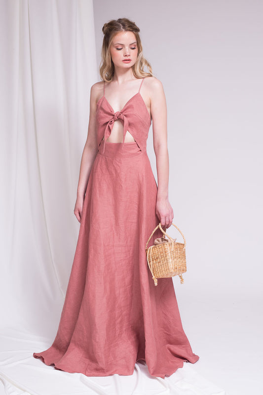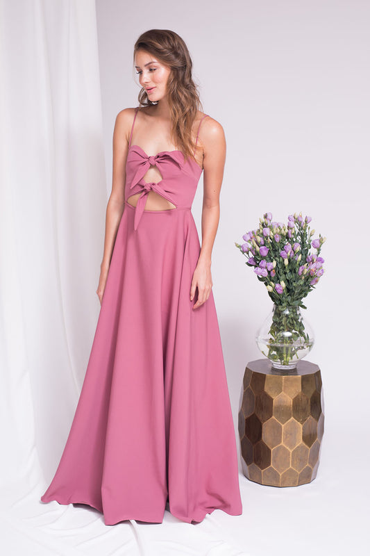 SAN LUCAS Double Bow Front Maxi Dress (Old Rose)