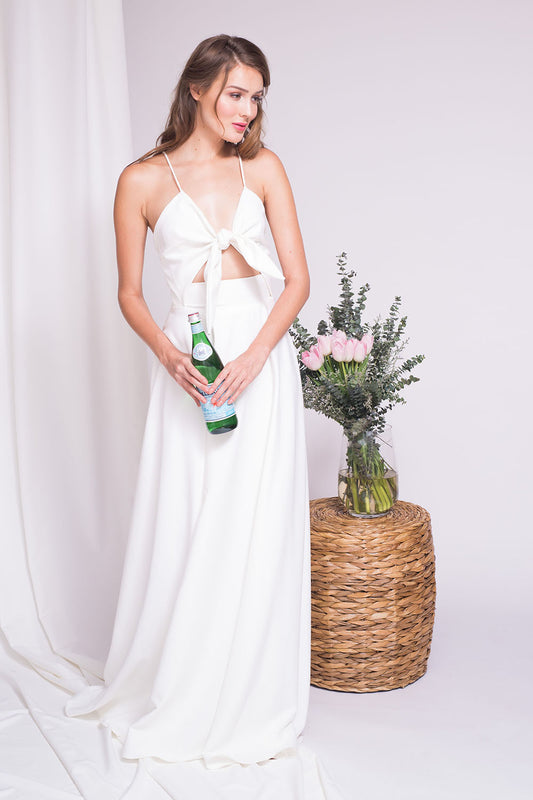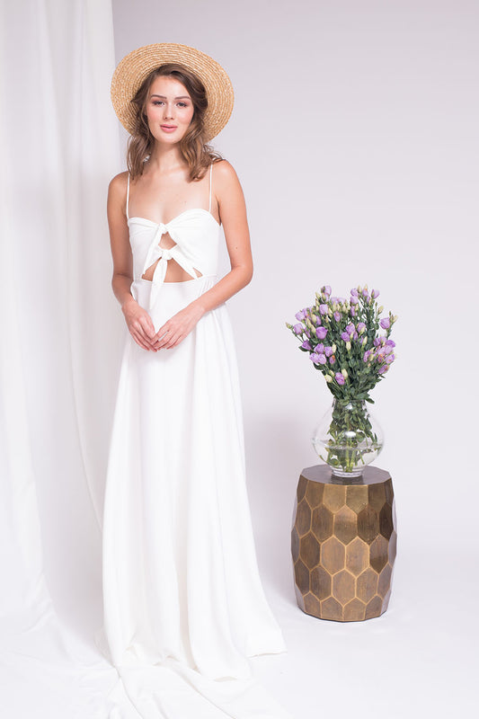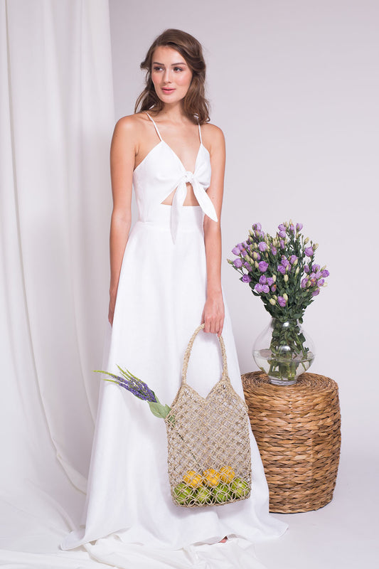 SAN LUCAS Double Bow Front Maxi Dress (White)