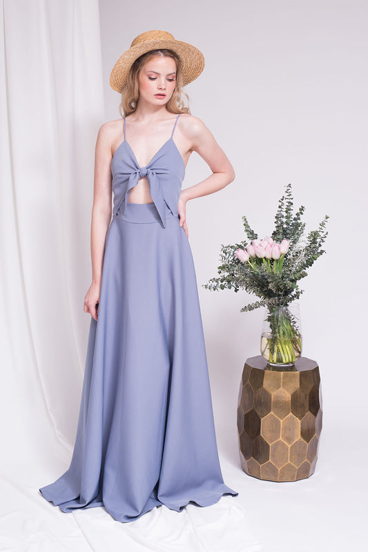 SICILY Bow Front Maxi Dress (Serenity Blue)