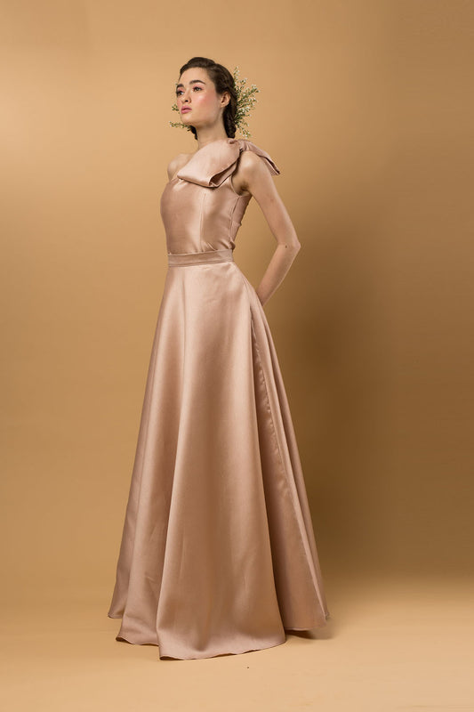 I DO BY ZOO: VIOLETA Gown Set-Asymmetric Bow Top and Ball Skirt (Nude Gazar)