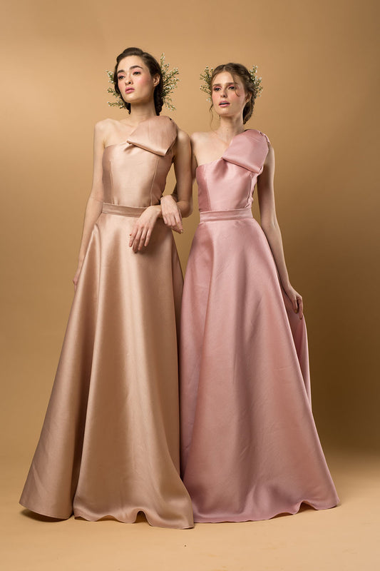 I DO BY ZOO: VIOLETA Gown Set-Asymmetric Bow Top and Ball Skirt (Blush Pink Gazar)