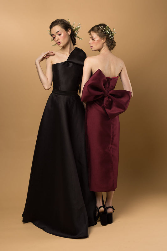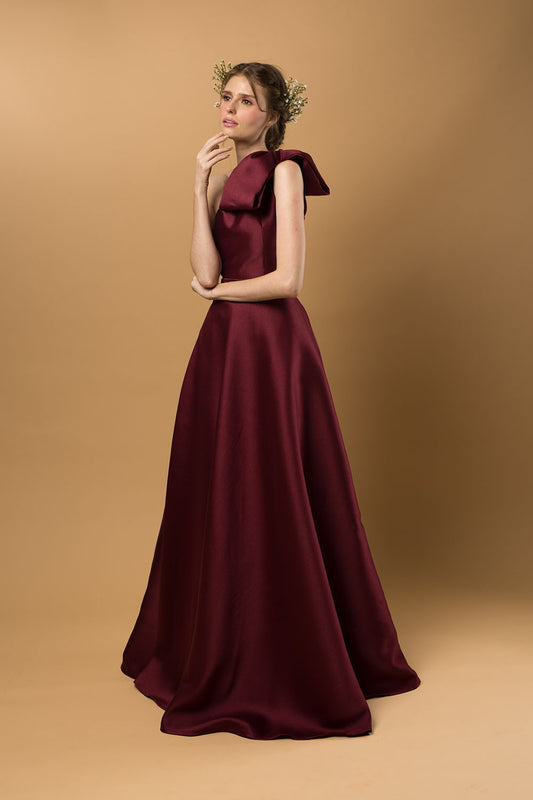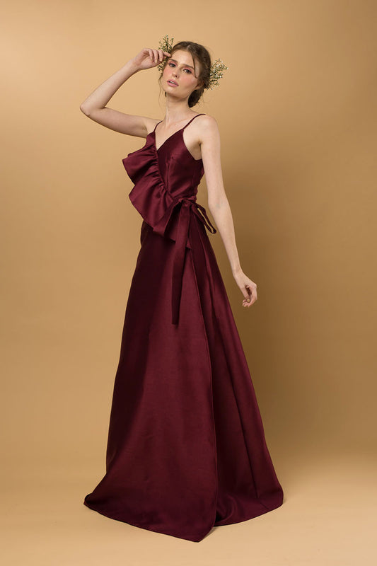 I DO BY ZOO: VIOLETA Gown Set- Asymmetric Bow Top and Ball Skirt (Dark Maroon)