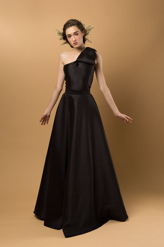 I DO BY ZOO: VIOLETA Gown Set - Asymmetric Bow Top and Ball Skirt (Black Gazar)