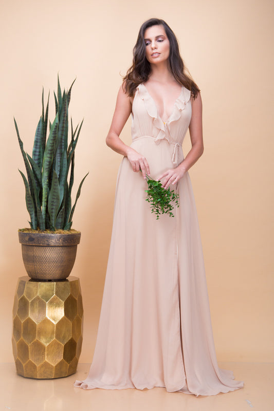 FLORENCE Ruffle Chiffon Maxi Dress with Wrap Skirt (Nude)