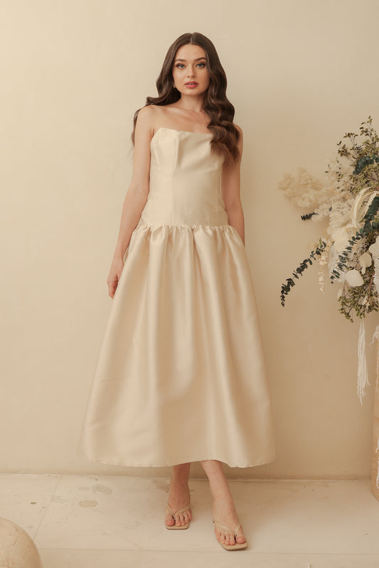 PROVENCE Strapless Drop Waist Midi Dress (Light Gold Gazaar)