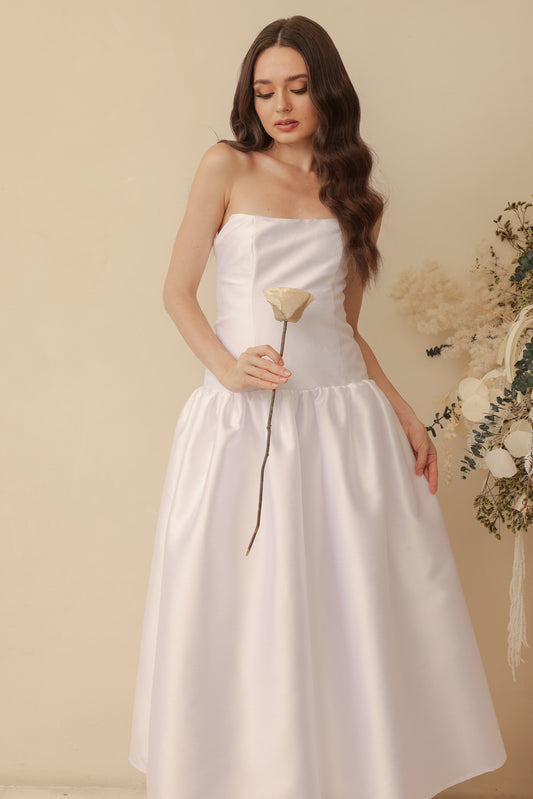 PROVENCE Strapless Drop Waist Midi Dress (White Gazaar)