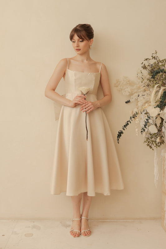 ODETTE Strappy Midi Dress with Bow Back (Light Gold Gazaar)