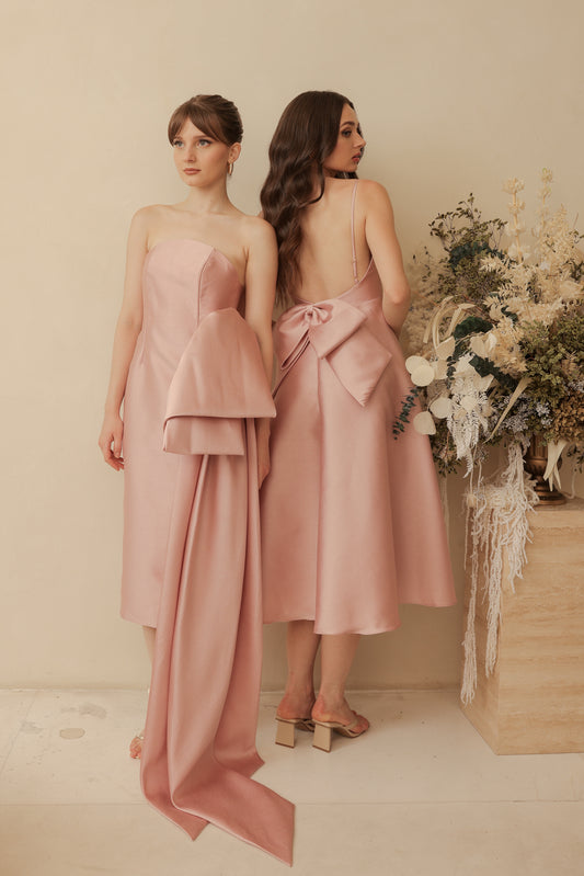 ODETTE Strappy Midi Dress with Bow Back (Old Rose Gazaar)