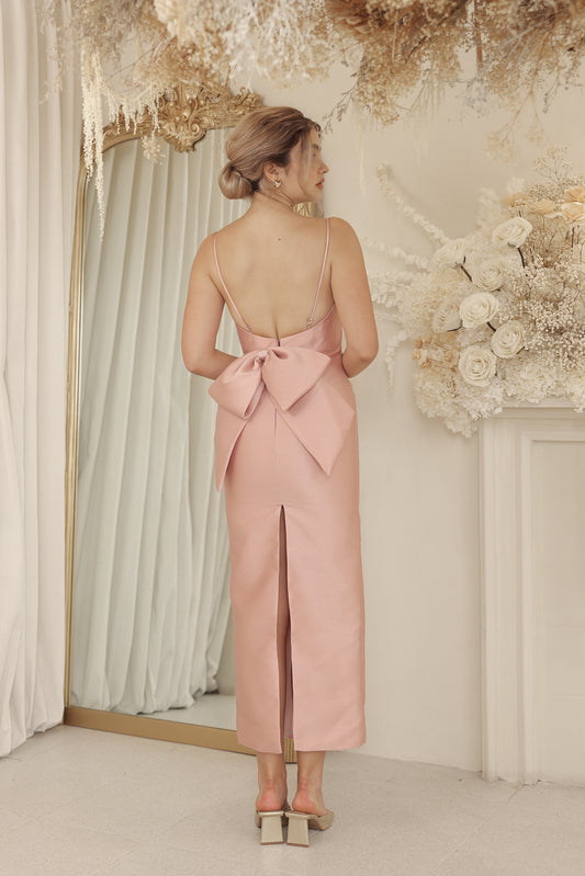 CHARLOTTE Curved Neckline Strappy Pencil Skirt Gown with Bow Back (Dark Old Rose Gazaar)