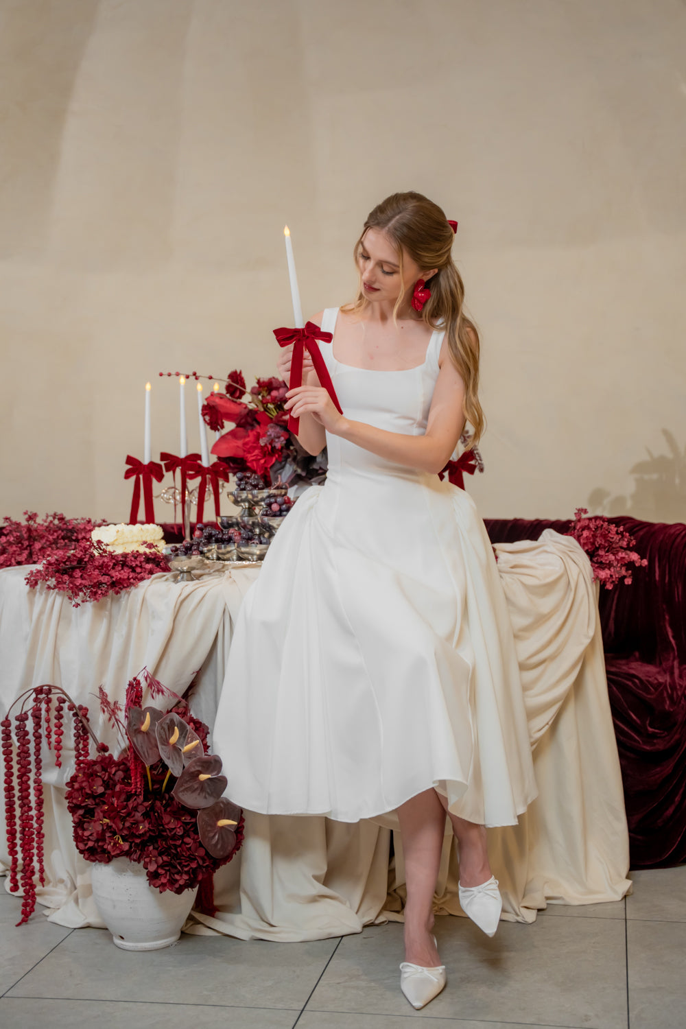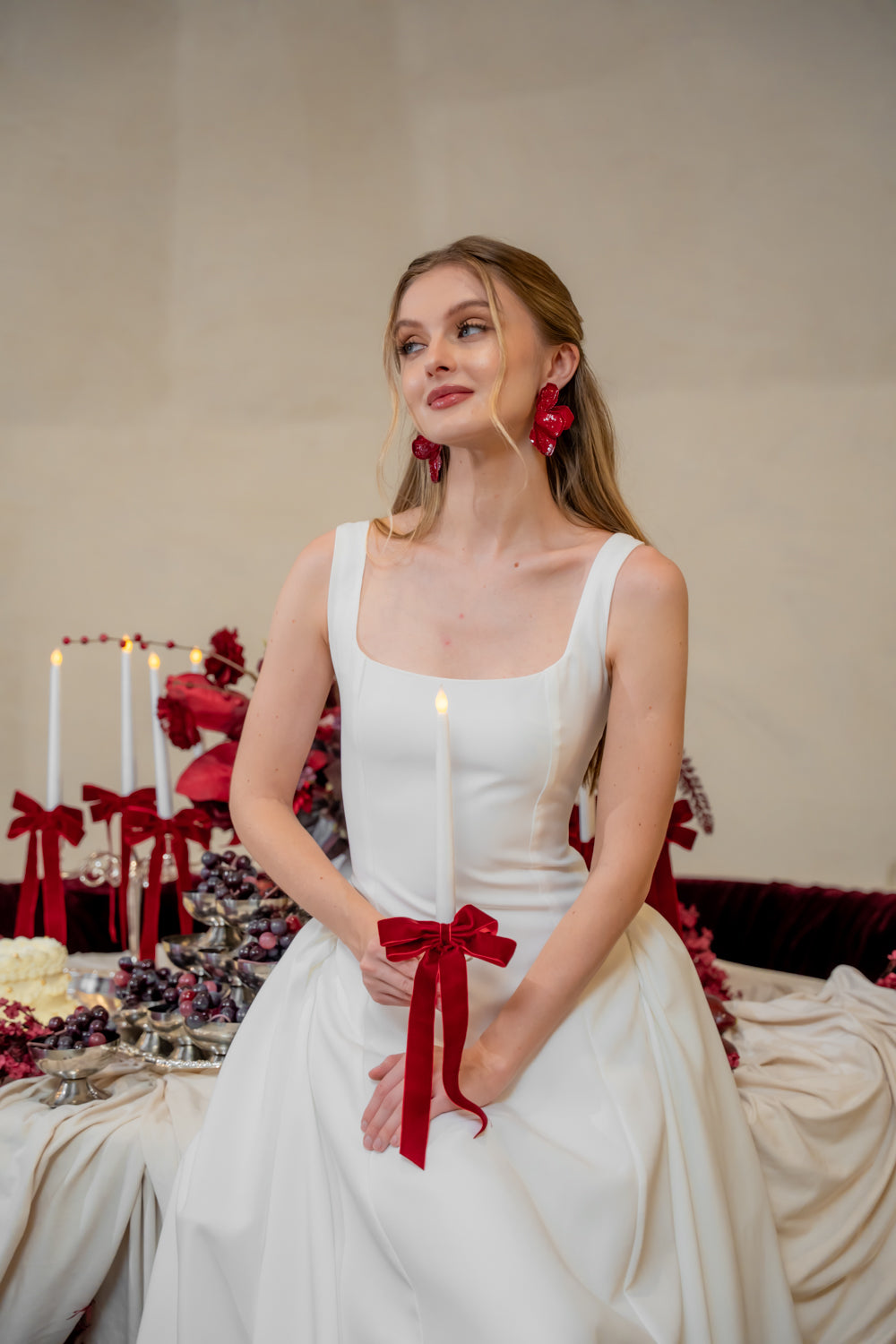 ARABELLA DRESS Sleeveless Midi Dress with Shirred Side Skirt (White Neocrepe)