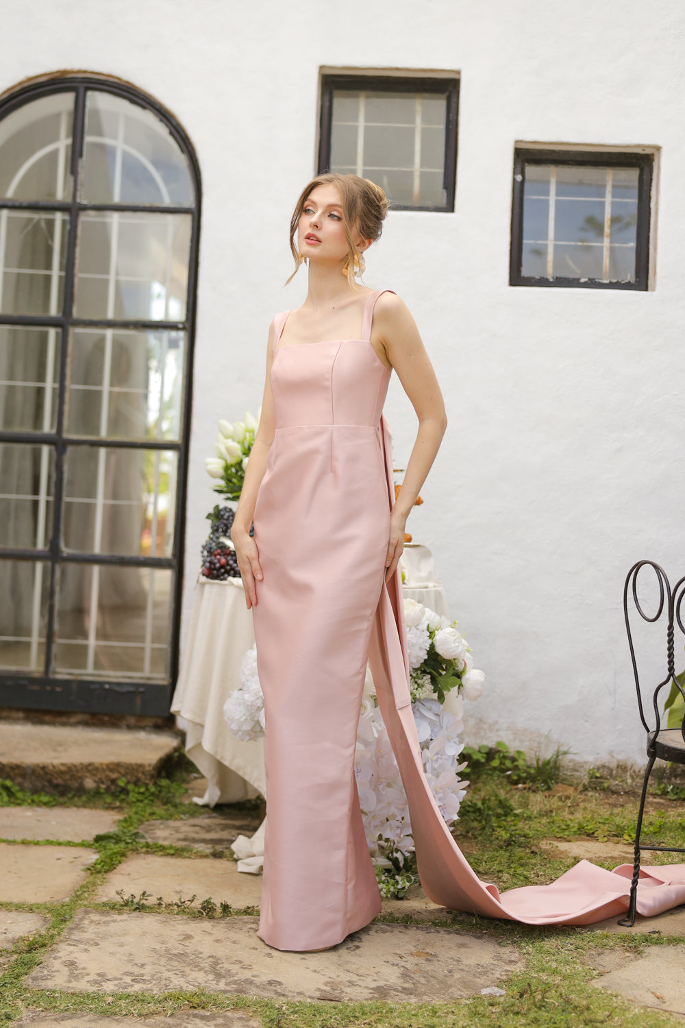 GABRIELA Strappy Straight Cut Gown with Detachable Bow Trail (Blush Gazaar)